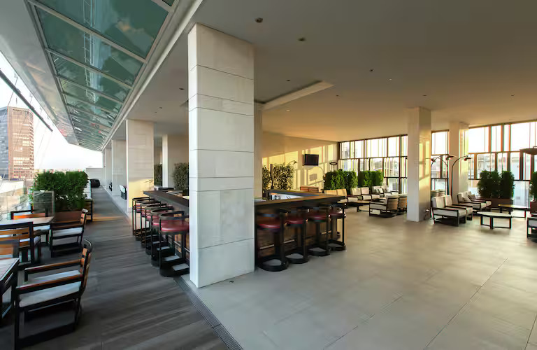 Tu su prostrani restoran, elegantni bar u lobiju, kao i luksuzni koktel salon sa pogledom na grad. U ostale sadržaje spadaju poslovni centar, teretana i spa centar.