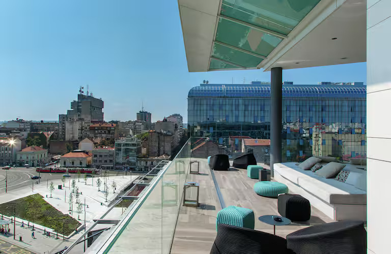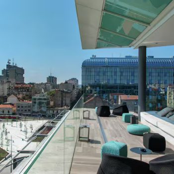Ovaj elegantni hotel u savremenoj zgradi sa glatkom staklenom fasadom je udaljen 3 minuta hoda od stanice tramvaja, 8 minuta hoda od Muzeja Nikole Tesle i 3 km od drevne Beogradske tvrđave.